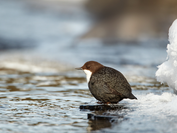The Dipper is a smallish compact bird of about 18cm that is easy to idntify due to it's habitat and behaviour, it is found bobbing about in the "dipping" movement which gives it its name. It is a strong powerful swimmer that in the right habitat is a common bird that can often be seen in the faster flowing rivers and streams of Northern England, Scotland, and Wales. Unfortunately it is on the decline and care should be taken not to disturb it, particularly during the nesting season. The Dipper is found in many streams and fast flowing rivers throughout quite a large range in Europe. The Dipper we have in Britian is the "White Throated" species which has a red-brown belly, in Northern Europe the Dipper sub species is the Black Bellied Dipper which has a brown-black belly. The images below were taken in Northern Finland, and are of the Black Bellied Dipper. |