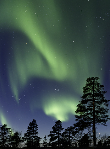To stand and watch the Northern lights is high on many peoples lists of things they want to do. It is also high on the list of things to photograph for many wildlife or landscape photographers. Having been to several Northern countries such as Norway, Sweden, Finland, and Iceland before and having only seen brief appearances of the Northern lights before, I too was keen to get some images of this wonderful light show. On a two week trip to Finland in 2012, I was fortunate enough to see the Northern Lights on six evenings. I returned to Finland in 2013 and saw the Northern Lights on a further three evenings. These images and those on the page of Aurora photography hints and tips were taken during these visits. On one of these visits we had a full moon which had quite a dramatic effect on the Aurora especially given the amount of reflected light from the snow. |